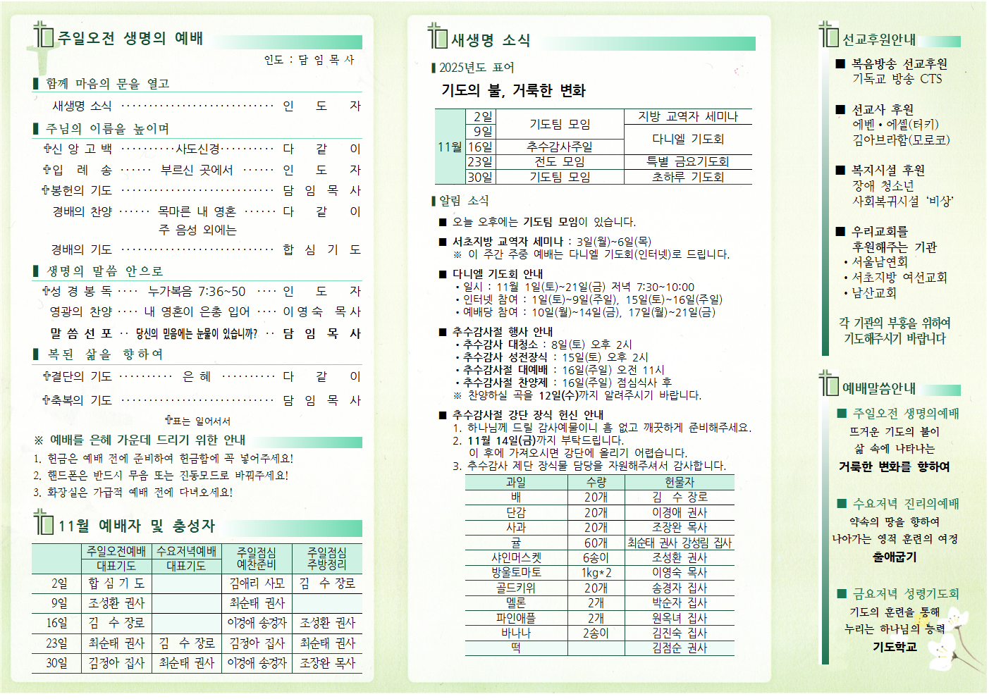 11월 2일 새생명교회 주보