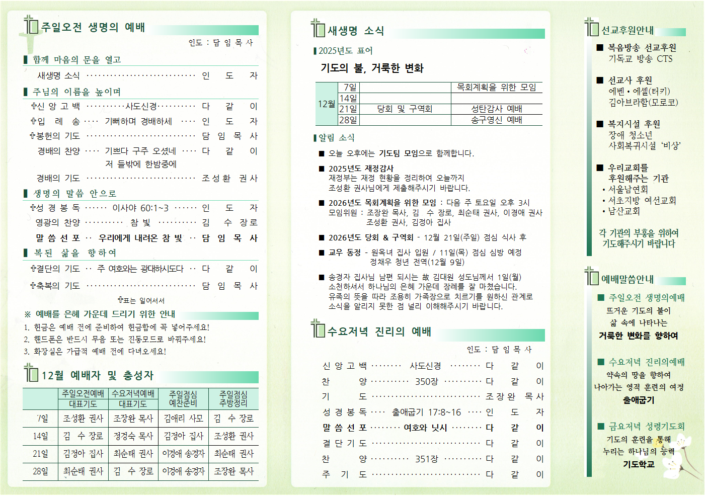 12월 7일 새생명교회 주보