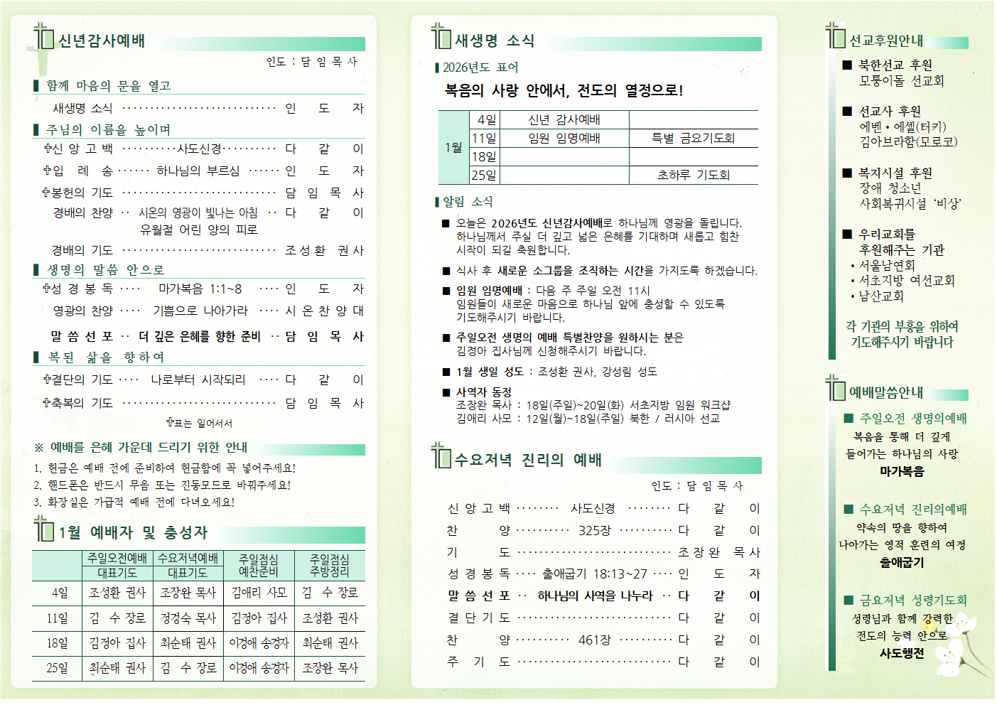 1월 4일 새생명교회 주보